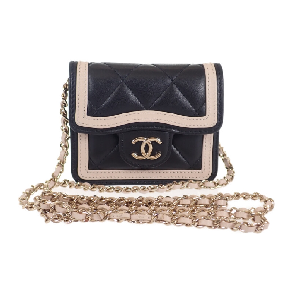 シャネルを象徴するクラシックなマトラッセステッチに、ブラックとベージュのバイカラーはエレガンスさを演出してくれます。