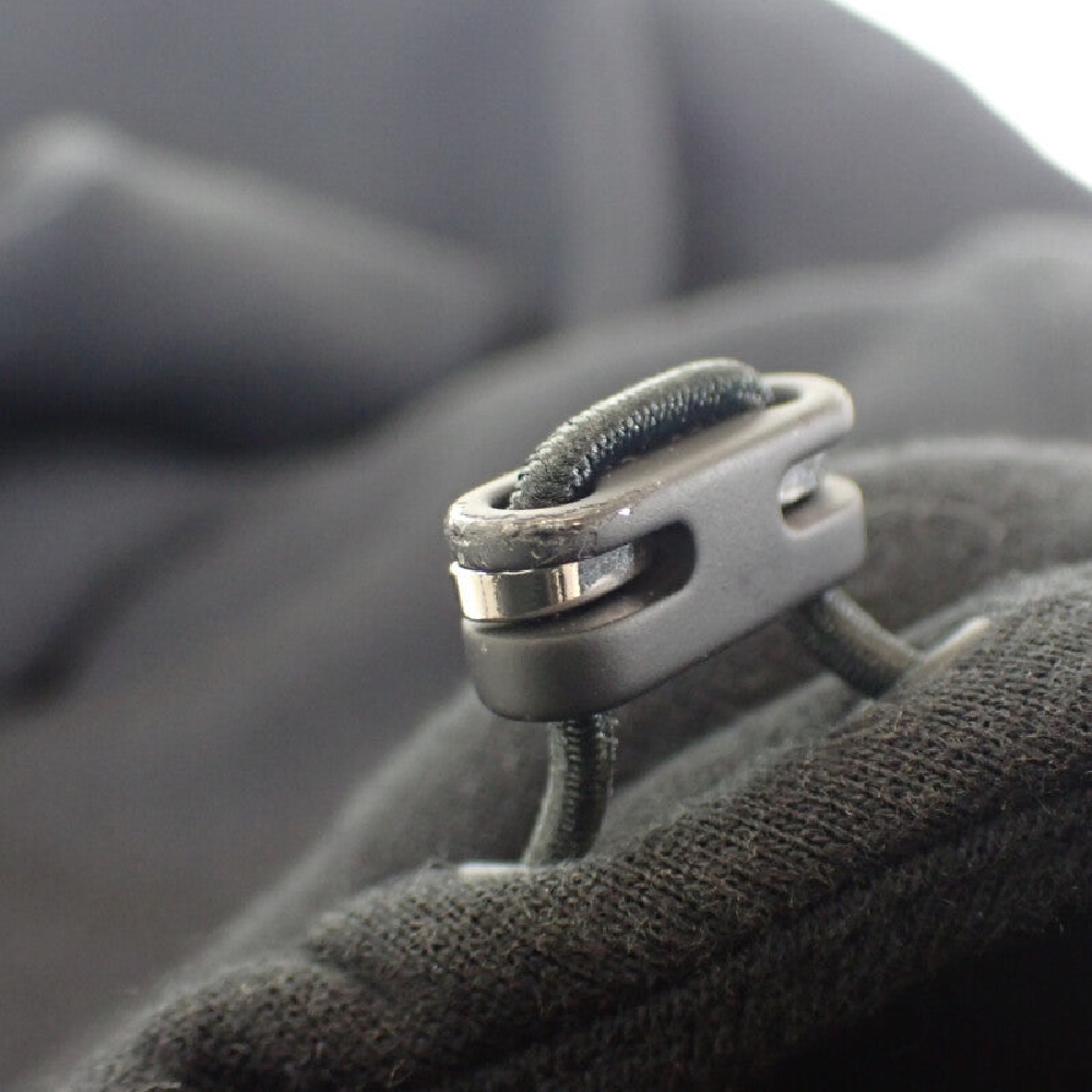 シンプルなデザインながら衿元のジップアップやフード口のドローストリング、