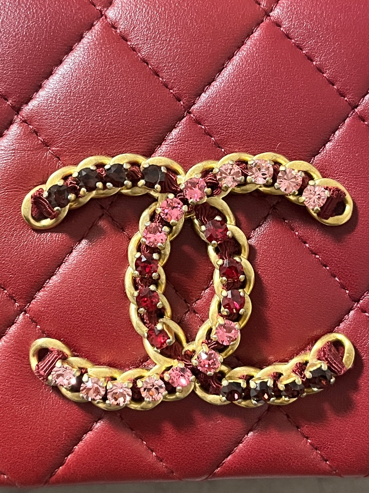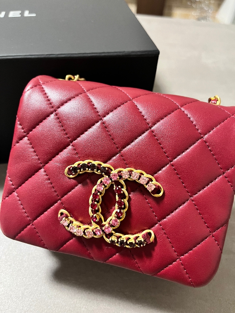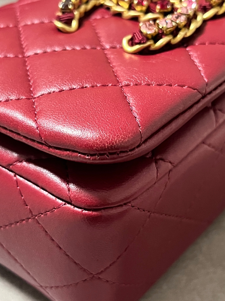 赤、ボルドー、ピンクのグラデーションのストラスが綺麗なボルドーカラーのチェーンショルダーバッグです。