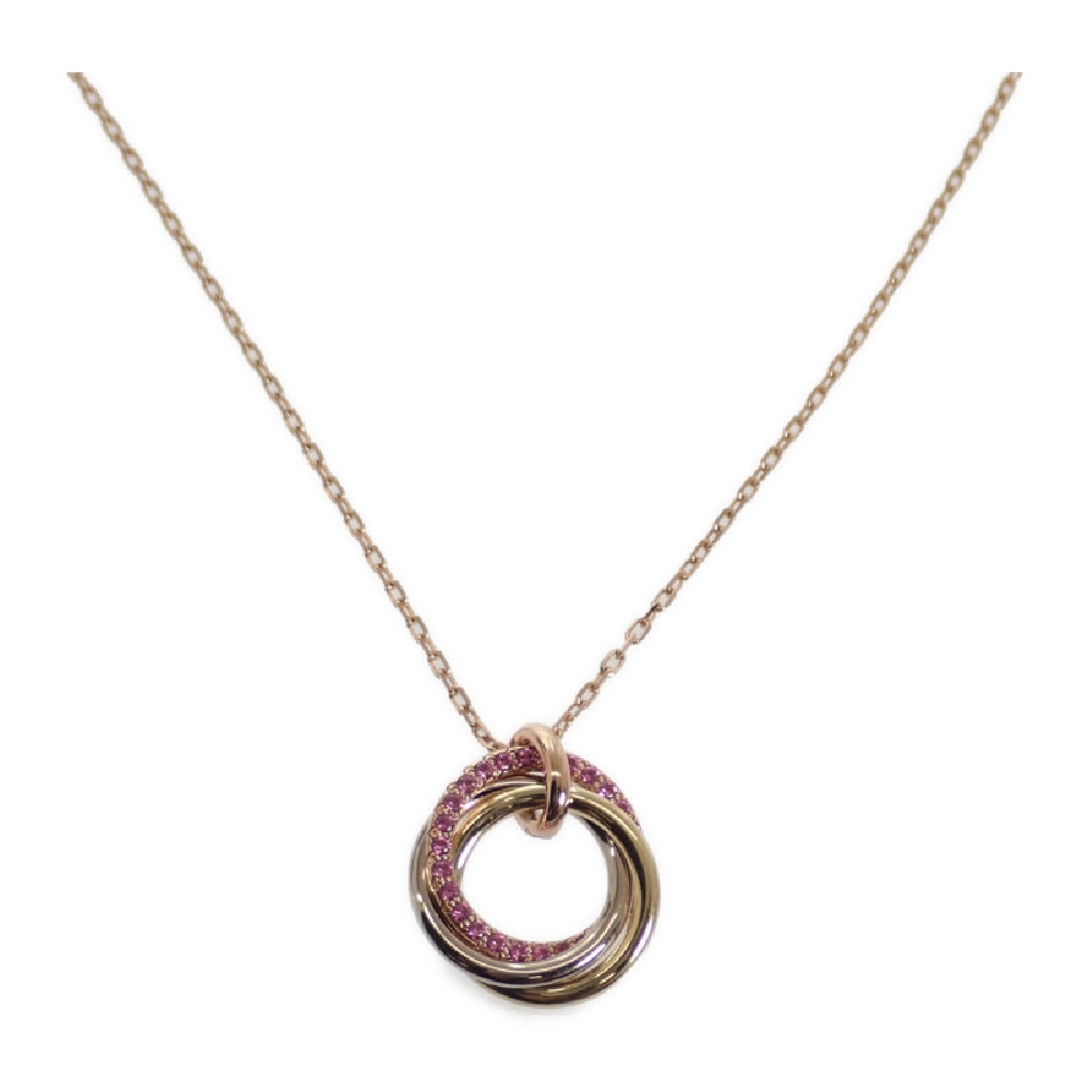 美しく輝くピンクサファイアを配し、18金ピンクゴールドが